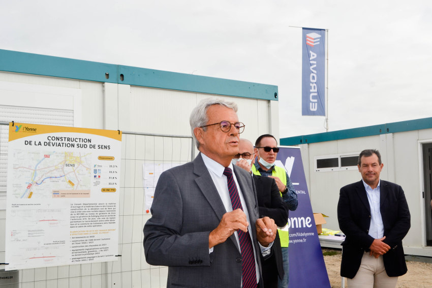 « Le président du Département Patrick GENDRAUD s’est rendu le 08 septembre sur le chantier de la déviation sud de Sens à la hauteur de Gron. Un des projets les lourds financièrement supportés par l’institution départementale… ». « Le président du Département Patrick GENDRAUD s’est rendu le 08 septembre sur le chantier de la déviation sud de Sens à la hauteur de Gron. Un des projets les lourds financièrement supportés par l’institution départementale… ». Crédit Photos : Floriane BOIVIN