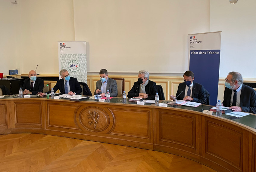 « Le PETR du Grand Auxerrois est le premier de ces organes institutionnels à être signataire d’un CRTE, le nouveau Contrat de Relance et de Transition Ecologique sur le territoire. 160 dossiers sont déjà identifiés ou en phase de l’être avant que ne se mette en place le comité de pilotage dont feront partie entre autres le préfet Henri PREVOST, le maire-président de l’Auxerrois Crescent MARAULT et Mahfoud AOMAR, président de la CC de l’Aillantais-en-Bourgogne ». « Le PETR du Grand Auxerrois est le premier de ces organes institutionnels à être signataire d’un CRTE, le nouveau Contrat de Relance et de Transition Ecologique sur le territoire. 160 dossiers sont déjà identifiés ou en phase de l’être avant que ne se mette en place le comité de pilotage dont feront partie entre autres le préfet Henri PREVOST, le maire-président de l’Auxerrois Crescent MARAULT et Mahfoud AOMAR, président de la CC de l’Aillantais-en-Bourgogne ». Crédit Photos : Thierry BRET.