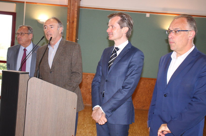 L’averse, plutôt drue qui devait s’abattre effectivement en cette fin de matinée, n’aura tout de même pas trop ternie les ardeurs enthousiastes des participants devant un tel projet. Soit les représentants institutionnels et politiques locaux, le député de la circonscription Guillaume LARRIVE en tête de gondole.