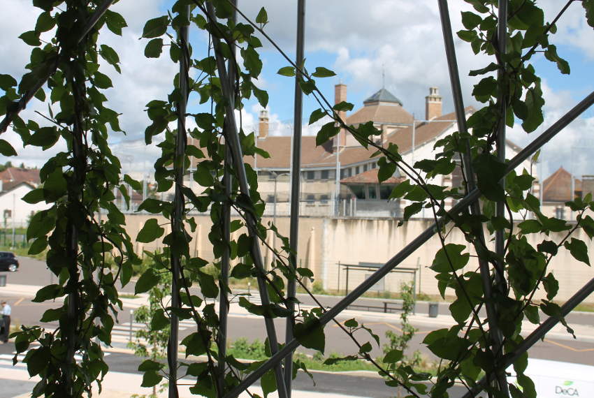 AUXERRE : Une treille végétale s’étalant sur toute la surface de l’édifice plutôt qu’un mur afin d’occulter le plus possible la perspective visuelle sur la maison d’arrêt. Il fallait y penser ! On le sait : Benoît BAZEROLLES ainsi que son alter ego au féminin chez « ATRIA Architectes » (la charmante et toujours très professionnelle Annick WOROBEL) ont de la suite dans les idées !