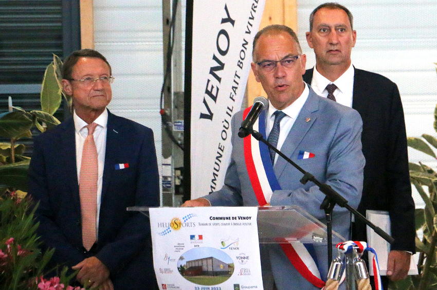 VENOY : Comme un clin d’œil aux prochains Jeux Olympiques de Paris, l’inauguration de « Heliosports » s’est déroulée ce vendredi 23 juin, jour de célébration de l’olympisme à travers le monde. Figurant au seul canton du département à ne disposer ni d’un collège ni d’un gymnase, Venoy se désespérait de pouvoir un jour se doter d’un espace couvert pour y accueillir à l’abri des intempéries, les associations sportives locales ou les scolaires inscrits sur son territoire.