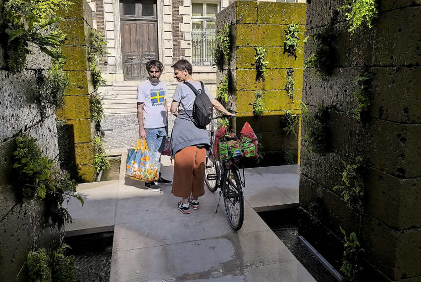 Lors d’une consultation de la population auxerroise organisée fin 2022, le choix d’une fontaine végétalisée avait été retenu par plus de 70 % des personnes qui s’étaient alors exprimées. Ses quatre pans de pierre sur lesquels s’accrochent des plantes aquatiques encore timides, trônent au milieu de la place, comme pour rappeler l’ancien castrum, enceinte fortifiée qui courait à cet endroit au IVème siècle, réapparue lors des fouilles archéologiques menées l’an passé pendant plus de quatre mois avant que ne débutent les travaux. Aujourd’hui, quelques clous dorés installés sur le sol, au-dessus de son ancien tracé, en soulignent l’existence aux visiteurs.