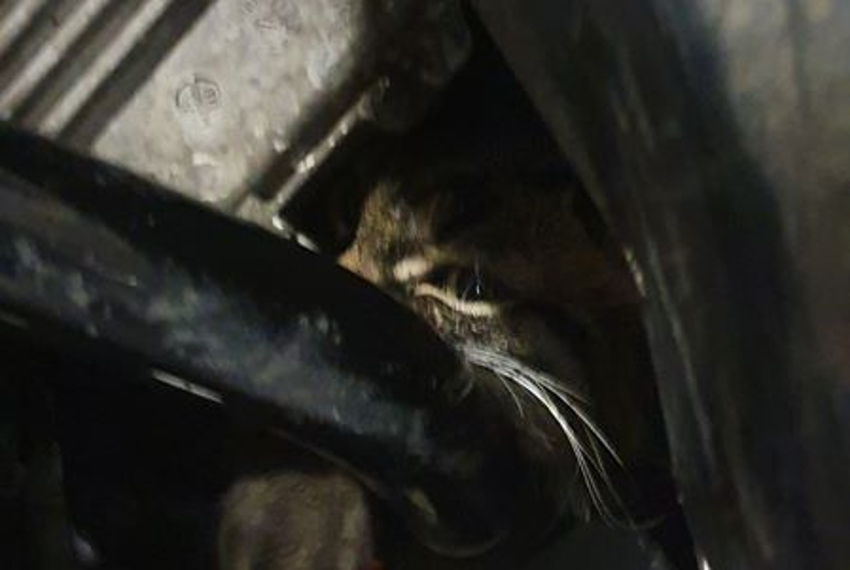 Le chaton, ayant trouvé refuge depuis plusieurs jours dans cette zone protégée mais dangereuse du véhicule, ne pouvait s’en extraire seul.