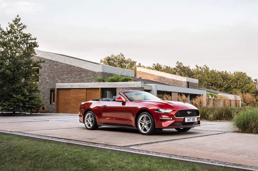 Dans l’Hexagone, on la trouve en deux versions: la Fastback et le cabriolet, dans sa déclinaison V8 5.0l de 449 ch avec boîte automatique à dix vitesses ou manuelle à six vitesses.