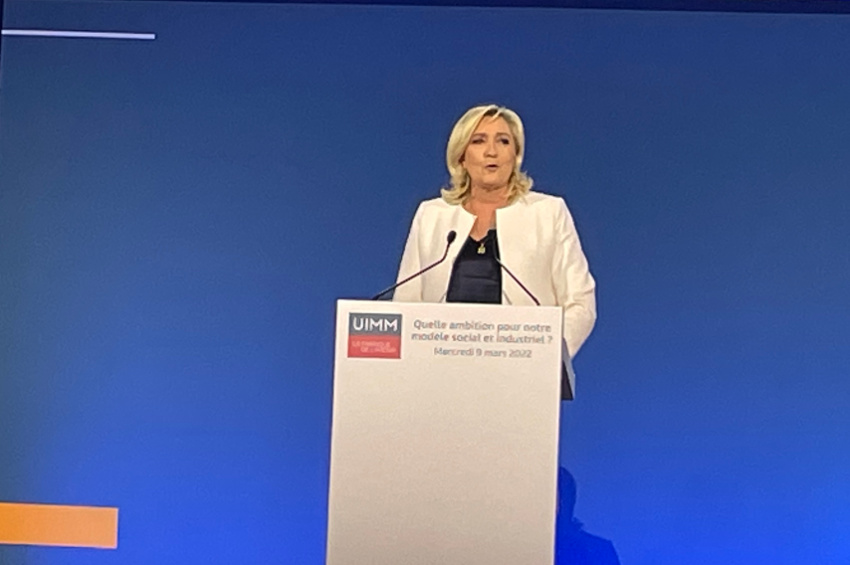 Se voulant rassurante auprès des entrepreneurs de la filière industrielle, celle qui est créditée de 17 % d’intentions de vote au premier tour de l’élection le 10 avril, a conclu son intervention en précisant qu’une fois élue, elle reviendrait sur l’interdiction très brutale du thermique, imposée à la filière automobile.