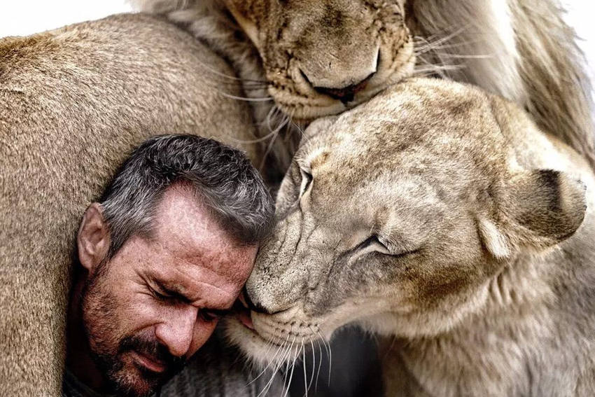 Tous les ans, à raison d’un séjour automnal en Afrique du Sud, Thomas se ressource au gré de ses visites dans le sanctuaire tenu par son ami Kevin RICHARDSON. Trente-sept lions y coulent des jours heureux. Originaires des parcs spéciaux destinés à la chasse, ils ont été accueillis par l’équipe du comportementaliste sud-africain, leur sauvant la vie par ce geste généreux. Aux côtés de 47 hyènes et de quatre léopards voués à une mort certaine : celle donnée par les chasseurs de fauves.
