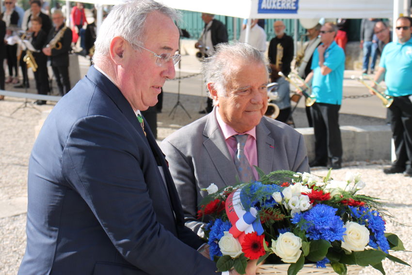 Plusieurs dépôts de gerbes concluaient cette cérémonie. Les anciens combattants se recueillirent quelques instants face au portrait du Général de GAULLE ainsi que les représentants de l’association de la Légion d’Honneur de l’Yonne (Baudouin DELFORGE, le président départemental et le président de la section auxerroise, le docteur Serge TCHERAKIAN).