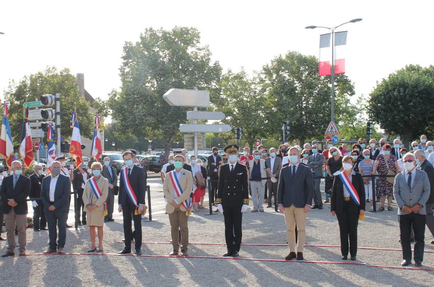 AUXERRE : Interprété par les musiciens de l’Harmonie municipale, le « Chant des partisans » retentit sobrement sur la place du monument aux morts où se déroule la commémoration du 76ème anniversaire de la Libération de la ville. Instant de pur recueillement et d’une émotion palpable à fleur de peau. Personne n’a oublié le drame qui s’est joué en ces lieux en 1944.