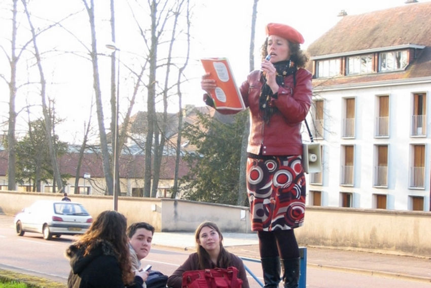 Elle choisit de travailler en territoire rural, en particulier sur la transmission de la poésie et de la lecture à voix haute. Direction l’Auxois, en Côte d’Or. Depuis 2005, elle organise le « Printemps des Poètes en Auxois », avec la Cie L’Enchantement de la Mandarine. Au programme : ateliers, lectures, brigades d’intervention poétique, spectacles...