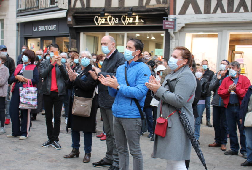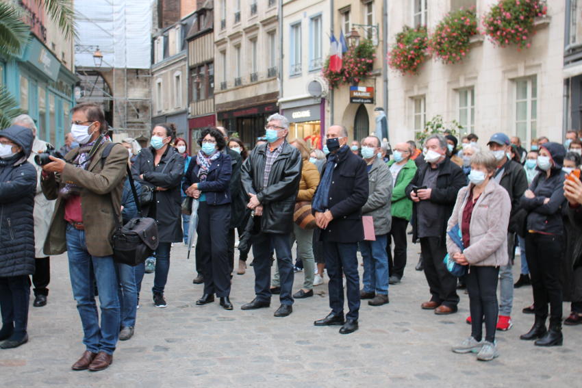 « A l’unisson, les élus de la Ville d’Auxerre ont respecté une minute de silence en mémoire du regretté enseignant Samuel PATY lâchement assassiné vendredi après-midi dans les Yvelines par un islamiste. La population a entonné l’hymne national et a applaudi longuement le professeur martyr… ». « A l’unisson, les élus de la Ville d’Auxerre ont respecté une minute de silence en mémoire du regretté enseignant Samuel PATY lâchement assassiné vendredi après-midi dans les Yvelines par un islamiste. La population a entonné l’hymne national et a applaudi longuement le professeur martyr… ». Crédit Photos : Thierry BRET.