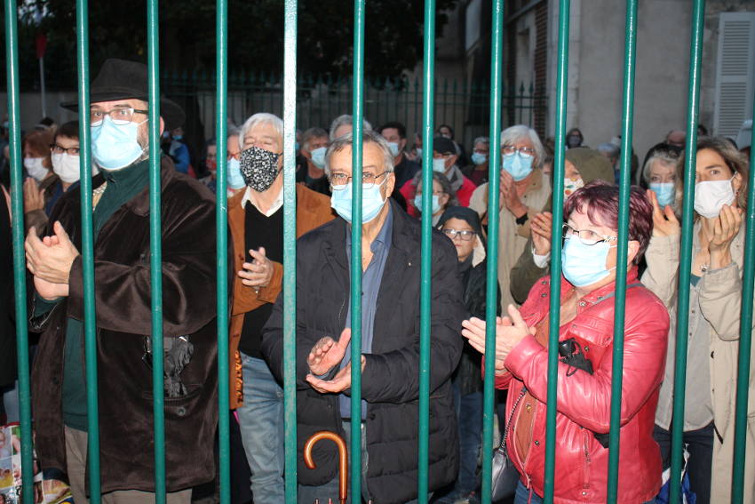 AUXERRE : Agglutinés contre les grilles du Square de la Laïcité, se souciant comme d’une guigne de la fine pluie qui les accompagnait dans leur tristesse, les Auxerrois ont rendu un ultime hommage au malheureux professeur d’histoire/géographie assassiné par un fanatique religieux.