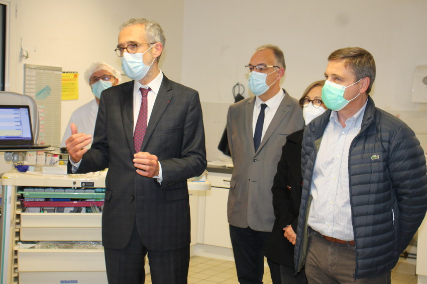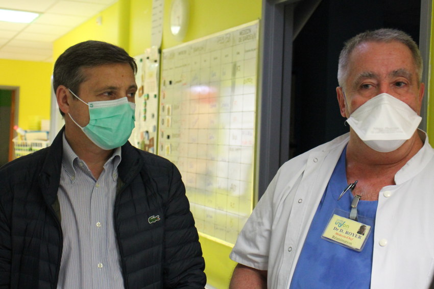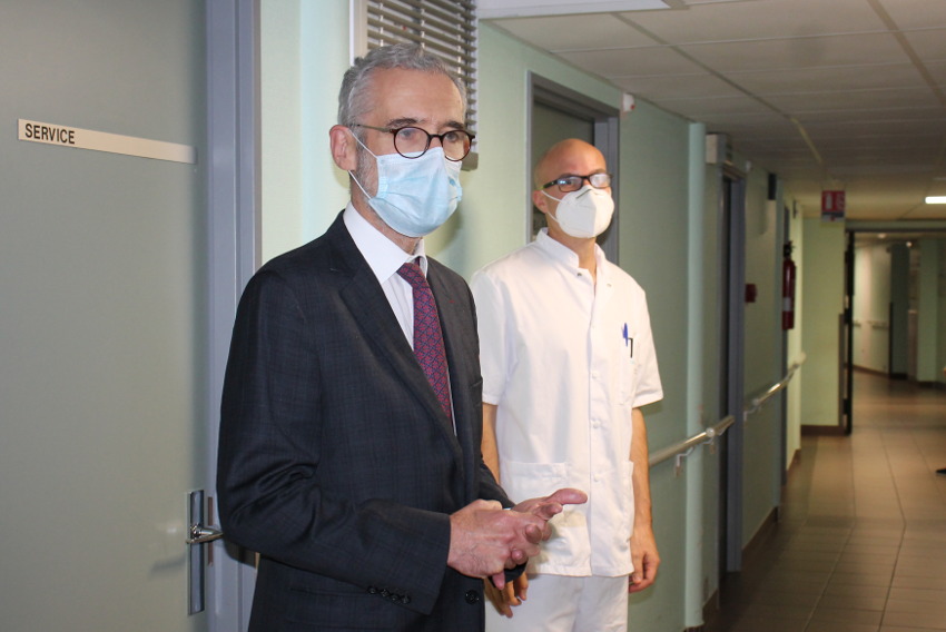 « Visiter l’unité COVID du centre hospitalier d’Auxerre où sont accueillis les patients les plus graves atteints par l’infection virale prouve que l’humanité toute entière n’a pas à faire un ennemi des plus classiques. Appliquer les gestes barrières, c’est respecter les soignants a souligné le préfet Henri PREVOST aux côtés de Crescent MARAULT, de Christophe BONNEFOND, de Maryline SAINT-ANTONIN et de Pascal GOUIN… ».