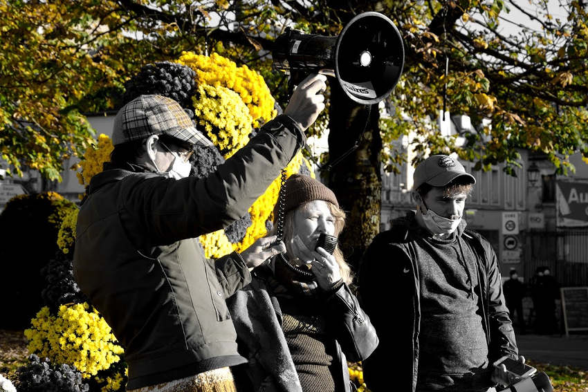 Le cortège démarra face au cinéma CGR dont les portes sont closes depuis plusieurs semaines. Un geste symbolique pointé comme un index dénonciateur en direction d’un lieu culturel ayant eu à subir la fermeture durant la période de confinement.
