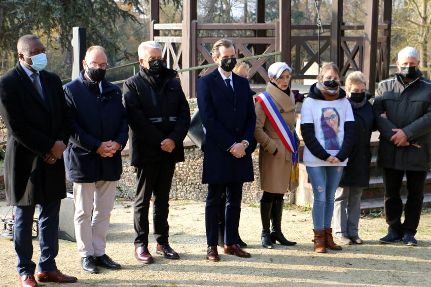 De l’école toute proche retentissent quelques rires d’enfants, sublimant la vie par-delà la mort. La cérémonie se termine… A quelques pas de là, une stèle pour rappeler que le parc est dédié à la paix. Puisse les enfants d’Angélique CLERE la retrouver un jour…