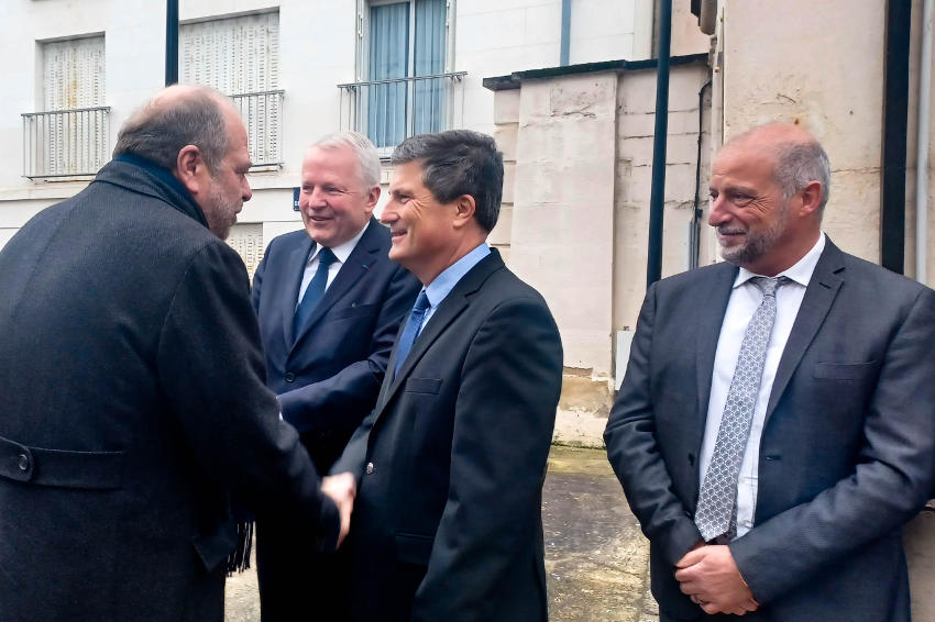 SENS : Arrivée protocolaire pour le garde des Sceaux Eric DUPOND-MORETTI à 10 heures du matin, devant le palais de justice de la ville de Sens. Les élus locaux et les magistrats s’étaient tous alignés, prêts à accueillir une poignée de main du ministre. Après un café républicain et un temps d’installation dans la salle, le représentant du gouvernement est entré dans le vif du sujet : la présentation de la réforme de la justice, suite aux récents Etats Généraux.