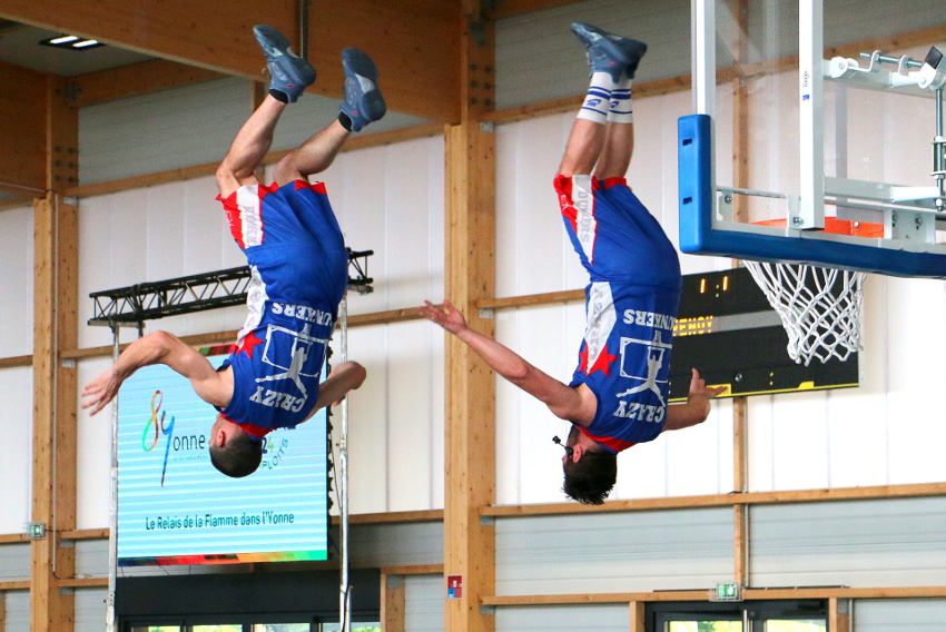 Le style paraîtra sans doute peu académique aux pisse-vinaigres mais les « Crazy Dunkers », une bande de copains originaires de la Loire, sont passés maîtres dans le basket acrobatique, enchaînant saltos et autres vrilles en se jouant des règles de la pesanteur… Michael JORDAN peut aller se rhabiller, ou alors s’acheter un trampoline !