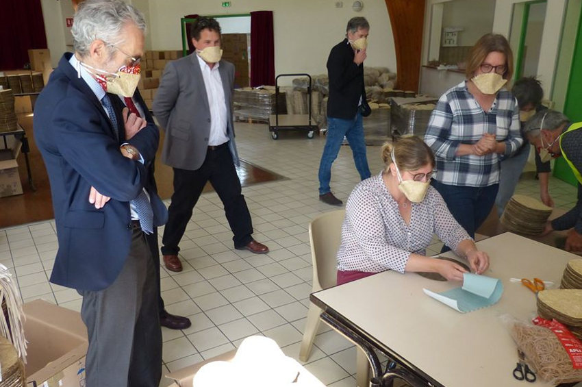 Le terme de cette immersion spéciale à Lézinnes s’est poursuivi à la salle des fêtes communale où les masques sont conditionnés avant d’être livrés par lot et en kit à monter.