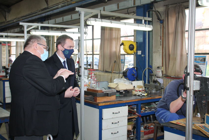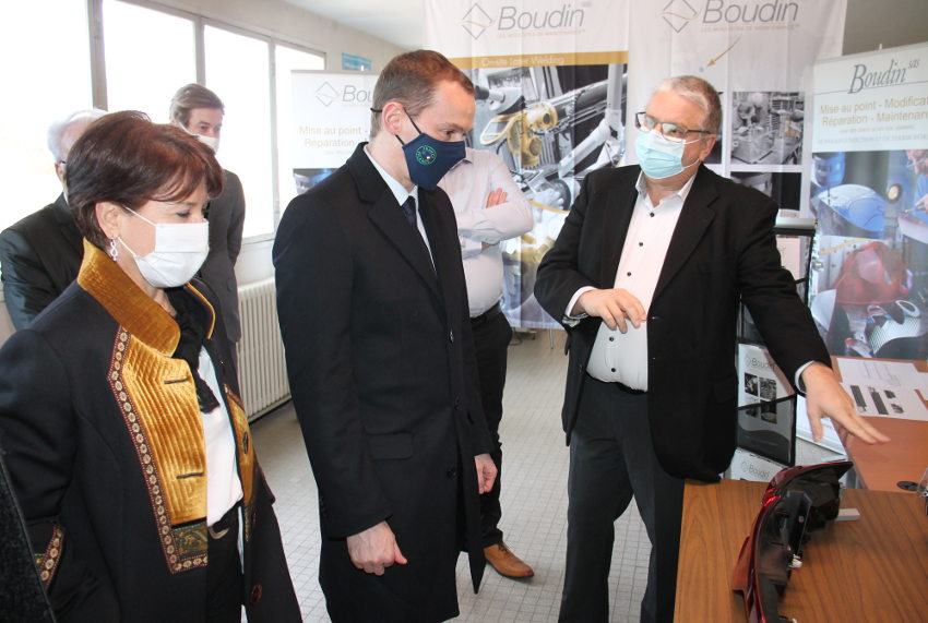A défaut d’Emmanuel MACRON, c’est bel et bien le ministre délégué auprès du ministre de l’Economie, des Finances et de la Relance, en charge des Comptes Publics Olivier DUSSOPT qui pénètre dans les ateliers de la SAS pour une immersion instructive de plus d’une heure.