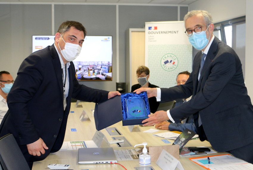 « Lors de sa visite, le préfet Henri PREVOST a remis à Sylvain PRUDON une plaquette officialisant l’aide obtenue de l’Etat par la SICAREV pour la modernisation de ses installations à Migennes. Également présent lors de cette visite préfectorale, le maire de Migennes, François BOUCHER s’est félicité de ce ticket gagnant à 1,35 M€, gage de la pérennité du site… ». « Lors de sa visite, le préfet Henri PREVOST a remis à Sylvain PRUDON une plaquette officialisant l’aide obtenue de l’Etat par la SICAREV pour la modernisation de ses installations à Migennes. Également présent lors de cette visite préfectorale, le maire de Migennes, François BOUCHER s’est félicité de ce ticket gagnant à 1,35 M€, gage de la pérennité du site… ». Crédit photos : Dominique BERNERD et TRADIVAL M. Perreau.