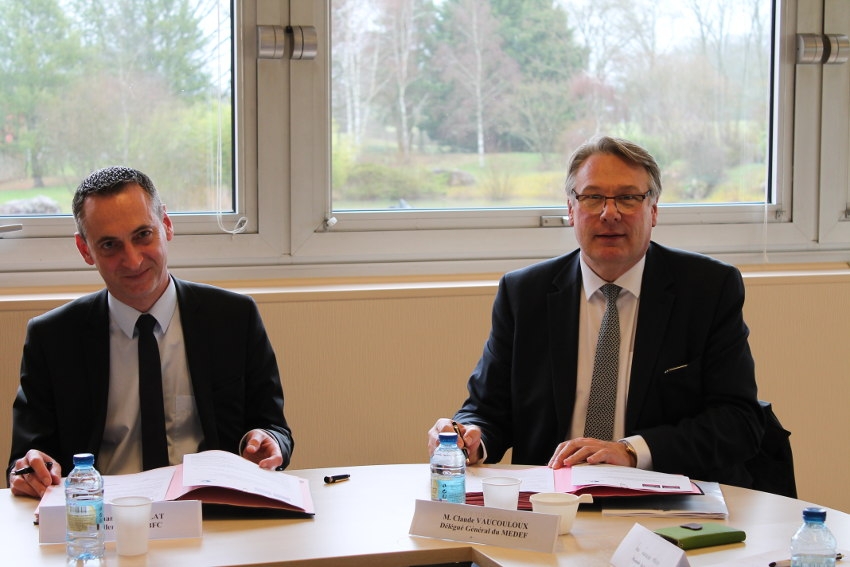 SAINT-FARGEAU : C’est au terme de la visite officielle que le préfet de l’Yonne Patrice LATRON a réservé à la société industrielle NOGUES ce vendredi 16 mars que les deux signataires de ce contrat de service novateur, Yves HUTIN, directeur territorial de Pôle emploi et Claude VAUCOULOUX, délégué général de l’UIMM, ont procédé à la signature d’un document validant leur désir de rapprochement. Ce texte, paraphé selon les codes et usages traditionnels sous le feu nourri des crépitements d’appareils photographiques, est applicable à la fois sur le territoire de l’Yonne mais également dans la Nièvre limitrophe.