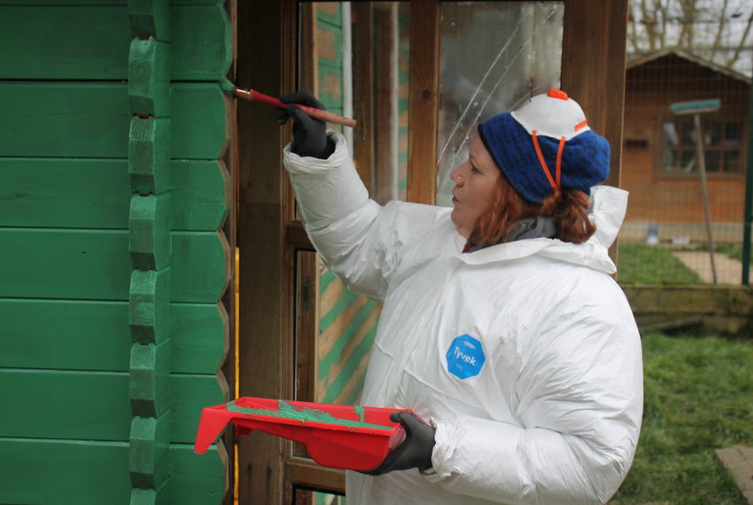 CHAUMOT : Les doigts sont gourds, et il n’est pas si simple d’immortaliser via l’appareil photographique tenu tant bien que mal dans les mains gelées le chantier en cours, assuré par les collaborateurs volontaristes du groupe BERNER ! Un premier cabanon présente une flamboyante physionomie rouge qui dénote avec le décorum ambiant du refuge, géré par l’association « Le Secours Félin ». Un second où s’active l’équipe en place se teinte de vert. De manière progressive, à grands coups de pinceaux et de rouleaux. Que du matériel et des produits à l’estampille de BERNER, c’est logique ! D’ailleurs, on est jamais aussi bien servis que par soi-même, non ?
