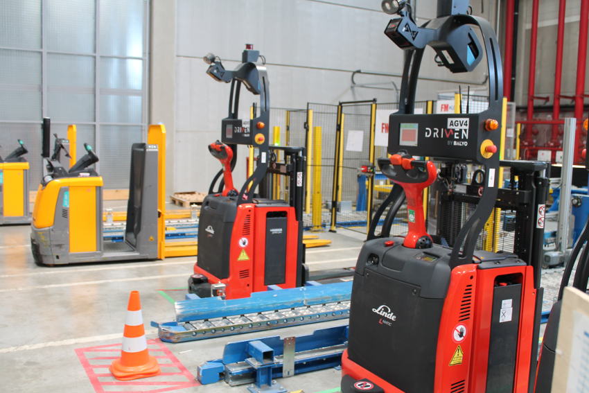 FM LOGISTIC a opté pour l’acquisition de cinq chariots de manutention autoguidés l’année dernière. Conçus par le fabricant BALYO, ces appareils interviennent au plus près de l’îlot de filmage qui conditionne les palettes gorgées de produits avant leur expédition.
