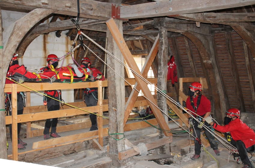 Un acronyme qui rappelle que l’on a affaire aux représentants émérites du Groupe de Reconnaissance et d’Intervention en Milieu Périlleux. Des femmes et des hommes qui possèdent du cran, une sacrée dose de courage et surtout la dextérité dans le moindre des gestes accomplis pour le démontrer lors d’un exercice un peu particulier. Celui-ci fut concocté dans les charpentes séculaires de l’Abbaye Saint-Germain à Auxerre.