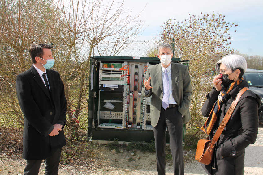 « Le déploiement de la fibre optique se poursuit dans l’Auxerrois pour l’opérateur ORANGE. C’est au tour de la commune de Villefargeau de bénéficier de l’installation d’une seconde armoire de connexion. Un nouveau pas en avant pour le déployeur régional piloté par Véronique MORLIGHEM aux côtés de Alexandre ORCEL, Malika OUNES, Arminda GUIBLAIN et Pascal BARBERET… ». « Le déploiement de la fibre optique se poursuit dans l’Auxerrois pour l’opérateur ORANGE. C’est au tour de la commune de Villefargeau de bénéficier de l’installation d’une seconde armoire de connexion. Un nouveau pas en avant pour le déployeur régional piloté par Véronique MORLIGHEM aux côtés de Alexandre ORCEL, Malika OUNES, Arminda GUIBLAIN et Pascal BARBERET… ». Crédit Photos : Thierry BRET.