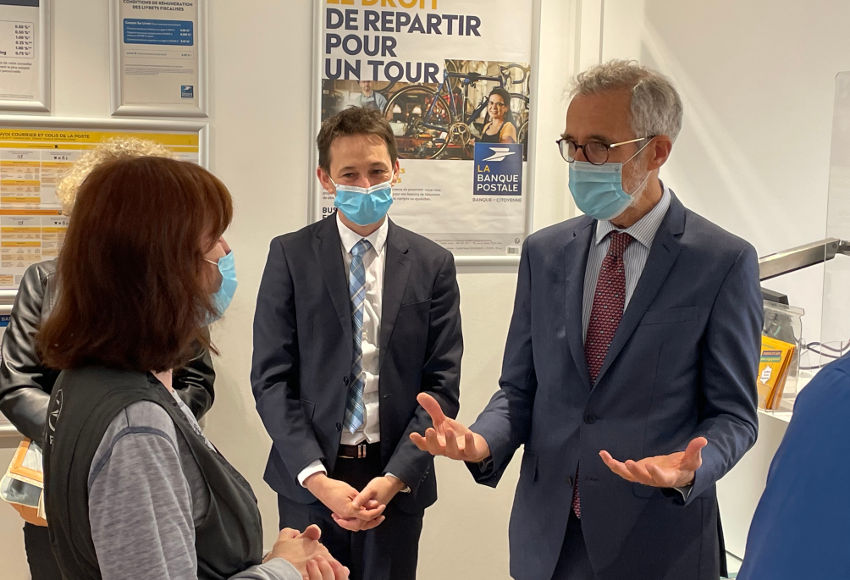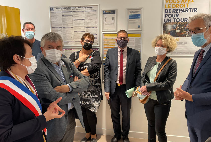 « Depuis le 01er septembre 2020, La Poste accueille dans son bureau de Noyers-sur-Serein un socle commun de huit opérateurs répondant aux offres de France Services. Un nouveau point d’ancrage inauguré par le préfet de l’Yonne Henri PREVOST, l’élue Nathalie LABOSSE et le directeur des Territoires de La Poste, Eric MEUNIER ».