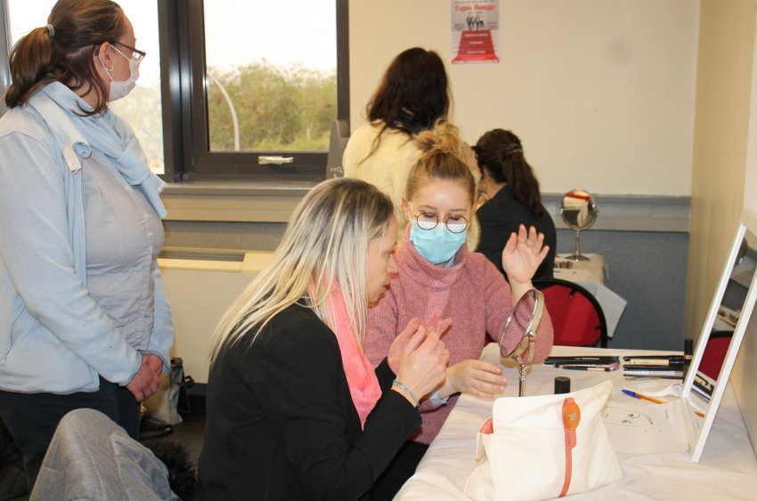Le maquillage, déposé délicatement çà et là sur des mines parfois défaites, adoucit davantage les visages. Chacune savoure l’instant. Enfin, on s’occupe d’elles. Afin de se préparer à vivre un exercice dès le tantôt où il sera question d’entretien d’embauche virtuel.