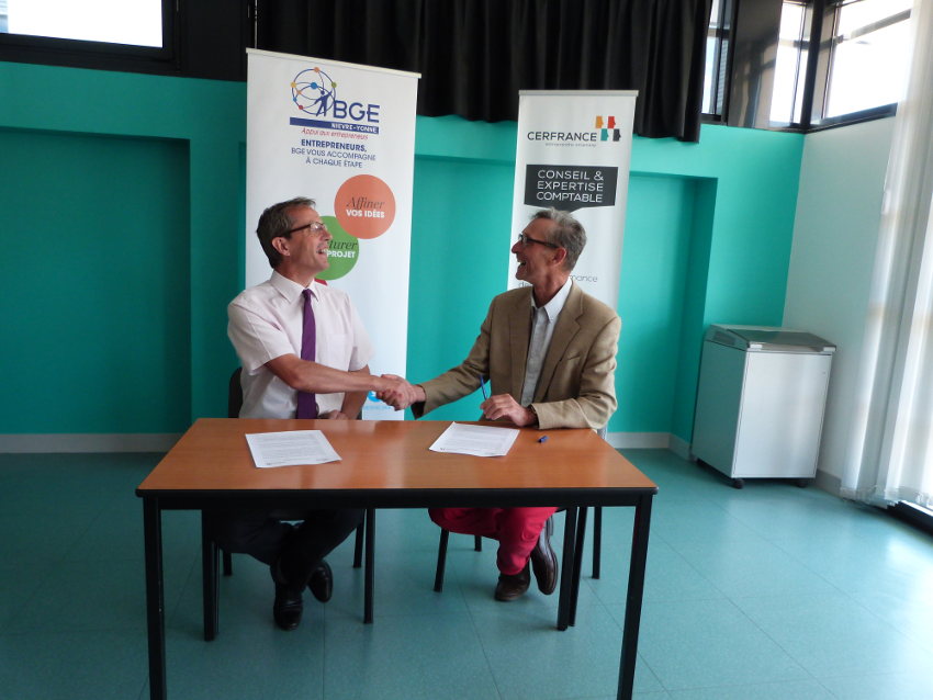 Des valeurs convergentes que les signataires ont fait valoir dans leurs explications justifiant leurs griffes apposées au bas des documents. Laurent BEURIENNE, directeur général de CER France Yonne et Arnauld MERIC, président de BGE Nièvre Yonne, n’ont pas caché leur satisfaction d’être parvenu à ce montage collaboratif novateur. Il devrait être très profitable aux porteurs de projets à brève échéance.