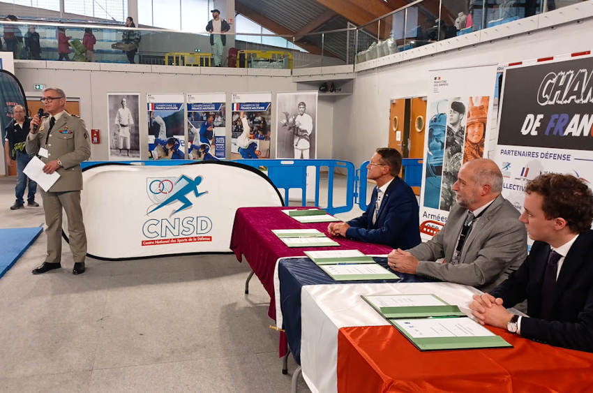 Une signature, un temps décalée par rapport au déroulé initial de ce copieux programme sportif proposé sur la journée, préférée après les finales devant récompenser les meilleurs des judokas militaires en lice dans cette compétition.