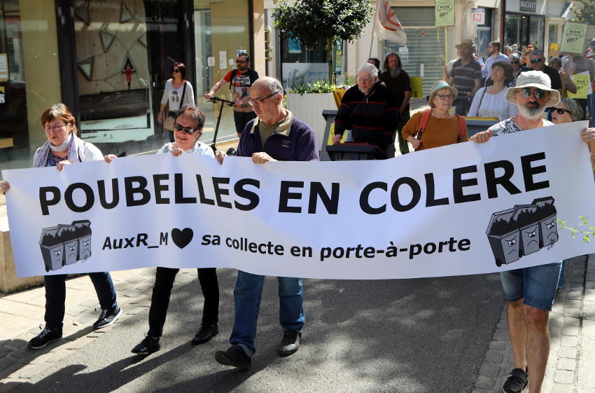 Le collectif « AuxR_M sa collecte en porte-à-porte », regroupe aujourd’hui 360 personnes, simples citoyens pour la plupart, qui s’est donné pour mission d’essayer de faire changer la politique mise en place par la gouvernance actuelle sur la question des déchets. Revendiquant un programme jugé moins onéreux et plus vertueux : traitement et valorisation des biodéchets, maintien de la collecte en vigueur, maintien et modernisation des sept déchetteries existantes, création d’une recyclerie et de « donneries » pour un réemploi des objets déposés.