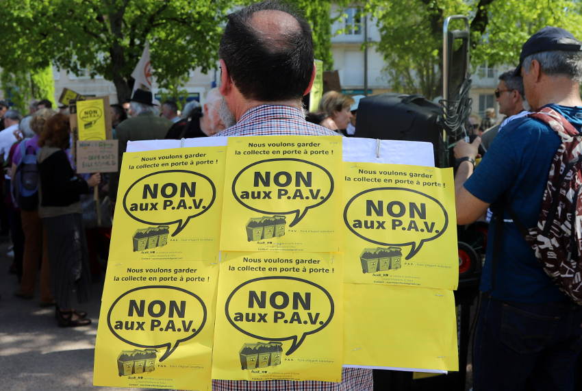 Sur l’air des lampions, ce slogan martelé à la sono semble donner le rythme au défilé : « les poubelles, c’est notre affaire, on ne se laissera pas faire… ». Pour nombre de personnes présentes, la précipitation à voir modifier l’existant, sans concertation préalable ne « passe » pas : « on a tenté de discuter, de parlementer mais le projet a été voté et nous citoyens, nous sommes retrouvés devant une situation qui semble pour beaucoup d’entre nous aberrante… ».