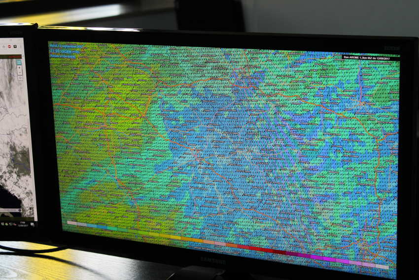 Alexandre, Clément et Raphaël pianotent sur les claviers de leurs ordinateurs qui traquent les courbes des précipitations, les tendances des températures, la nébulosité du ciel, le point de rosée, le taux d’humidité…Les analyses affinées s’effectuent heure par heure sur l’ensemble de la journée.