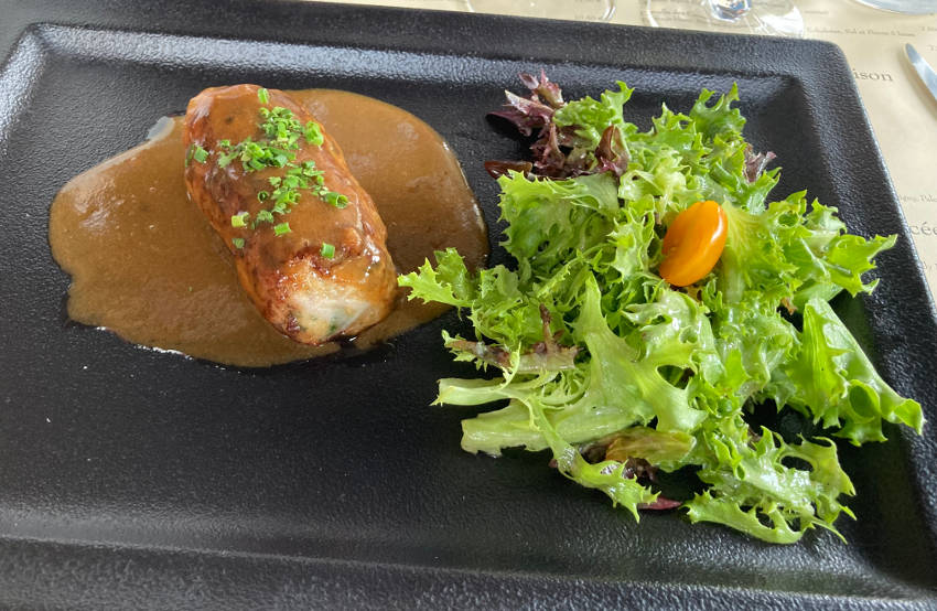Service aimable, cuisine simple et bonne dont une délicieuse tête de veau, et en dessert de bonnes crêpes « Suzette » flambées. Sur la carte des vins, impeccablement écrite sur un cahier, nous dénichons une petite pépite que votre serviteur vous recommande chaudement : un Bourgogne Pinot noir du domaine Philippe et Hélène LIVERA, vignerons à Gevrey-Chambertin, à la concentration intense.