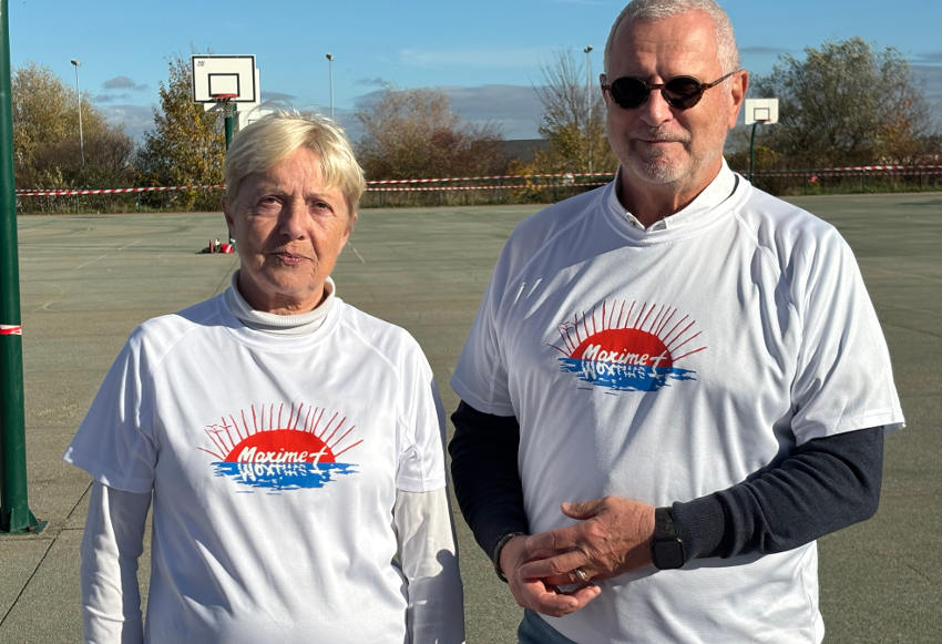 Cette année, « Maxime + » était à l’honneur. Une première de l’aveu de son président, Bernard MARTIN, présent non loin de ces joutes sportives, il était accompagné de l’une des nombreuses bénévoles, Sylvaine. Leur petit stand, muni de calicots, était idéalement placé près de la piste. Une belle opportunité de se faire remarquer de tous, coureurs comme suiveurs !